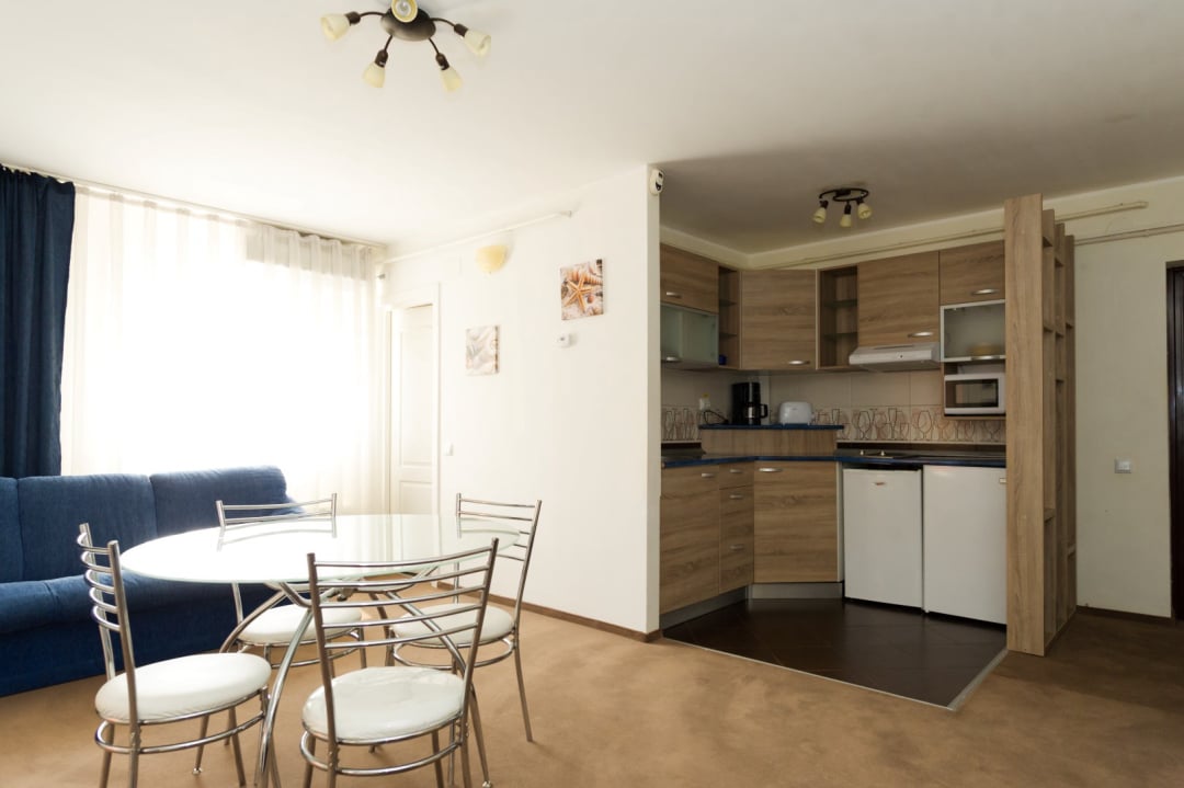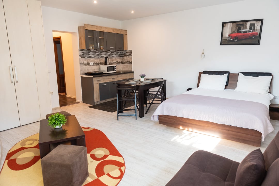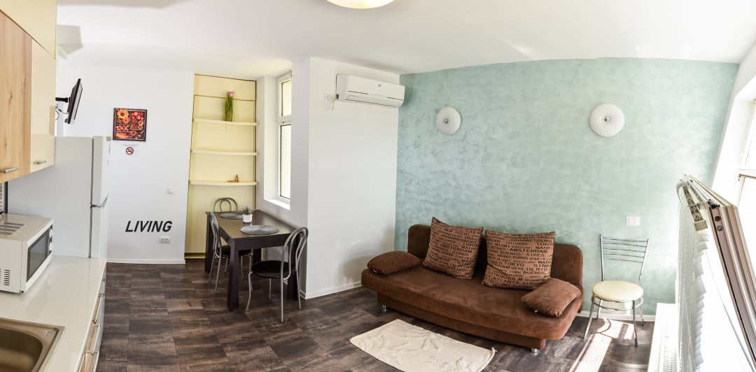 Apartamentul are o suprafata de 17 de metri patrati si poate caza 5 persoane.
