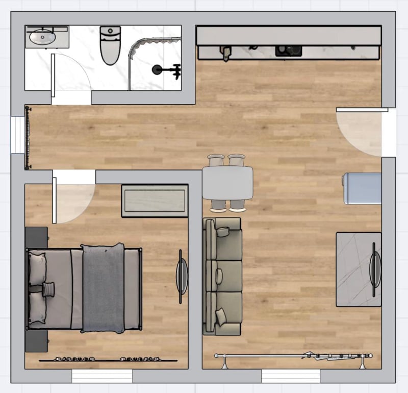 Apartamentul are o suprafata de 32 de metri patrati si poate caza 4 persoane.