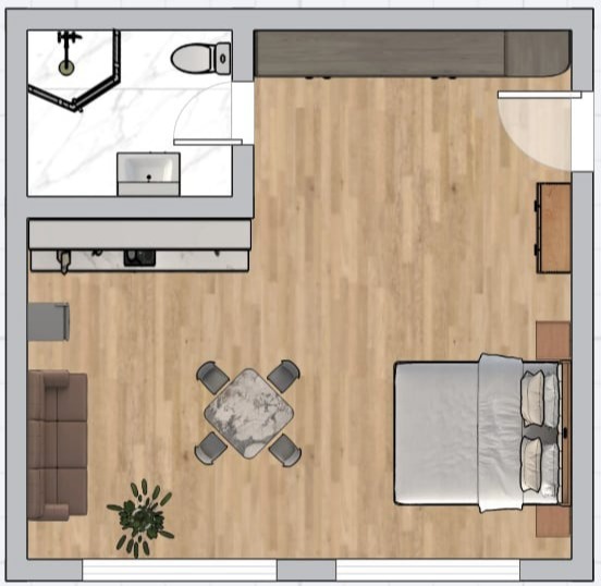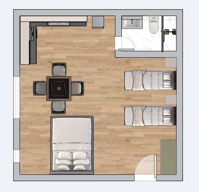 Apartamentul are o suprafata de 15 metri patrati poate caza 2 persoane.