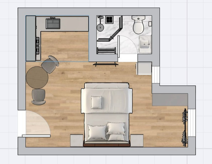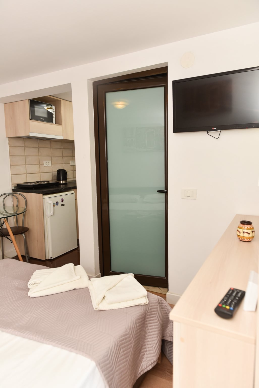 Apartamentul are o suprafata de 17 de metri patrati si poate caza pana la 2 persoane. Apartamentul are un pat dublu.